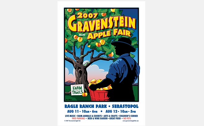 “Dan understands the needs and the vision of our organization & events, and I trust him to deliver excellent, highly compelling work, even when we're pressed with deadlines and shifting strategies. His inspired artwork has expanded our brand awareness and helped us to establish a rich visual identity of which we are proud. The posters, products and graphics that he designs for our Gravenstein Apple Fair each year have made our marketing an annual tradition that the public looks forward to, creating an integrated thematic, visually delightful experience for our visitors. I highly recommend Dan to any organization or event manager!”